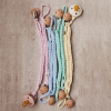 Nuestros portachupones son tejidos a mano con trapillo de algodón y tienen un lindo clip de madera.