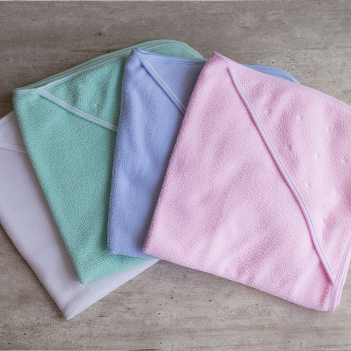 Son como el abrazo que damos a nuestro bebé. De polar carnerito con reverso de algodón y capucha, lo mantendrán calientito y protegido del frío.Medidas: 75cm x 75cm.
